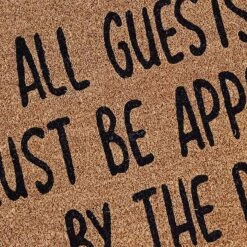 Our natural and black “All Guests Must Be Approved By The Dog” coir doormat lets you express your style as you welcome friends and family. With a wonderful natural hue, this 18x30in. doormat coordinates with all your seasonal decor.