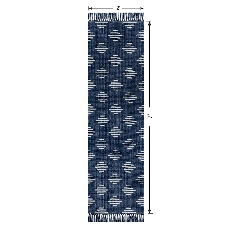 Be the first to review “(B727) Tracey Boyd Isla Indigo Flatweave Fringe Runner, 2×7” Cancel reply