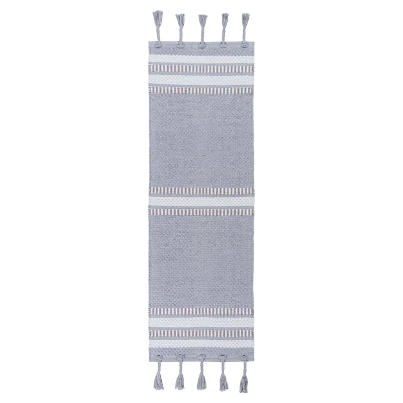 Modern farmhouse meets At Home prices in Honeybloom, our exclusive new brand that celebrates life lived together. All artistic aspects aside, area rugs help absorb and decrease noise as they soften the step on hard flooring within your home. Our 2x6ft. grey and ivory stripe tassel fringed runner rug, designed with neutral color combo, brings an element of organic simplicity to your space. Perfectly at home in casual to formal settings, this area rug is a natural go-to for eclectic living rooms, bedrooms and so much more.