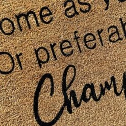Our natural and black “Come as you are – or preferably with Champagne” coir doormat lets you express your style as you welcome friends and family. With a wonderful natural hue, this 18x30in. doormat coordinates with all your seasonal decor.
