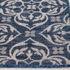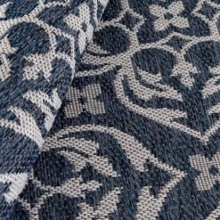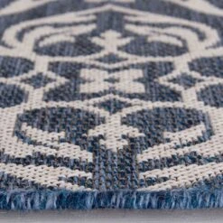 Versatility is key with our Kenton repeating medallion pattern indoor/outdoor area rug. The subtle cobalt blue background allows the design to pop and add interest to any floor. Perfect for an indoor mudroom, entryway, hallway, family room… wherever you need a durable and appealing solution. 100% synthetic to stay fresh indoors or outdoors on a patio, porch, sunroom, portico, pavilion or deck. Available in 5x7ft. and 7x10ft. sizes.