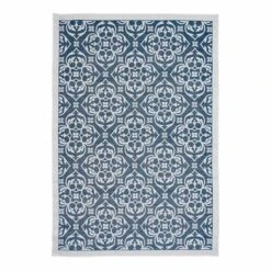 Versatility is key with our Kenton repeating medallion pattern indoor/outdoor area rug. The subtle cobalt blue background allows the design to pop and add interest to any floor. Perfect for an indoor mudroom, entryway, hallway, family room… wherever you need a durable and appealing solution. 100% synthetic to stay fresh indoors or outdoors on a patio, porch, sunroom, portico, pavilion or deck. Available in 5x7ft. and 7x10ft. sizes.