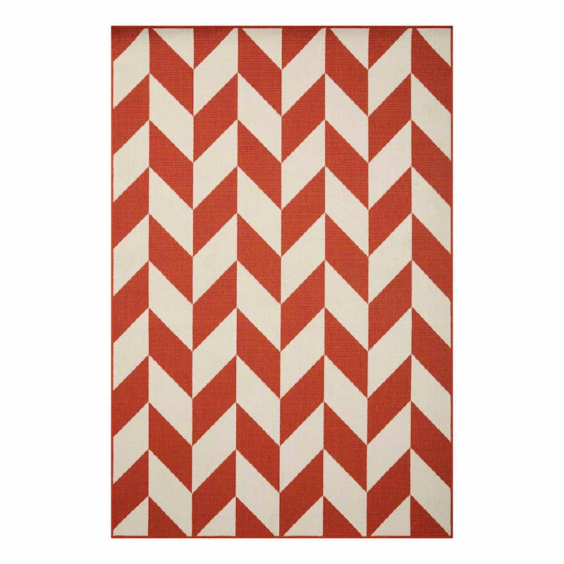 Need an instant room refresh? Switch things up a bit and roll out our Ember orange and tan herringbone accent rug to set a striking foundation in any room in your home. Showcasing an allover two-tone chevron that exudes a beachy vibe. The polyester fabrication offers comfort and is more resistant to wear. Available in 3x5ft., 5x8ft. and 8x10in. sizes.
