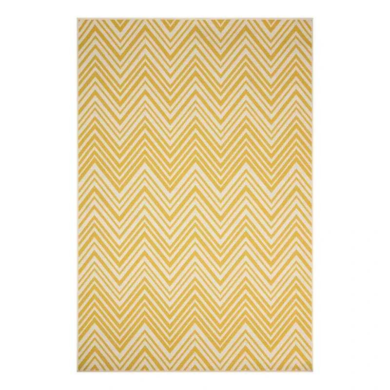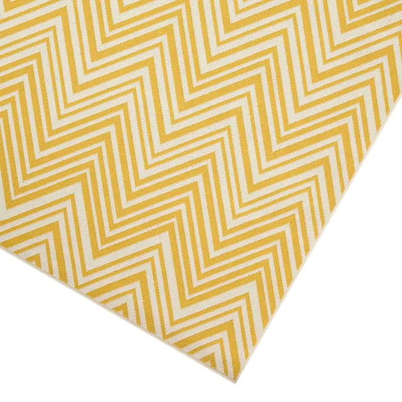 Need an instant room refresh? Switch things up a bit and roll out our Ember yellow and tan chevron accent rug to set a striking foundation in any room in your home. Showcasing an allover two-tone chevron that exudes a beachy vibe. The polyester fabrication offers comfort and is more resistant to wear. Available in 3x5ft., 5x8ft. and 8x10in. sizes.