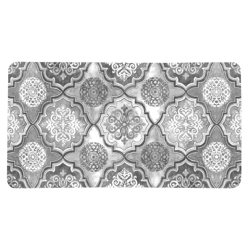 Our grey medallions 20x39in. kitchen mat lets you express your style as you host friends and family. With a simple grey hue, this handy synthetic mat coordinates with all your decor and softens the step as well.