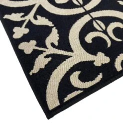 Our Hampton 18x30in. black tile kitchen mat lets you express your style as you welcome friends and family in for special occasions. With a large medallion motif, this handy black and tan polyester and cotton kitchen rug coordinates with all your decor and softens the step as well.