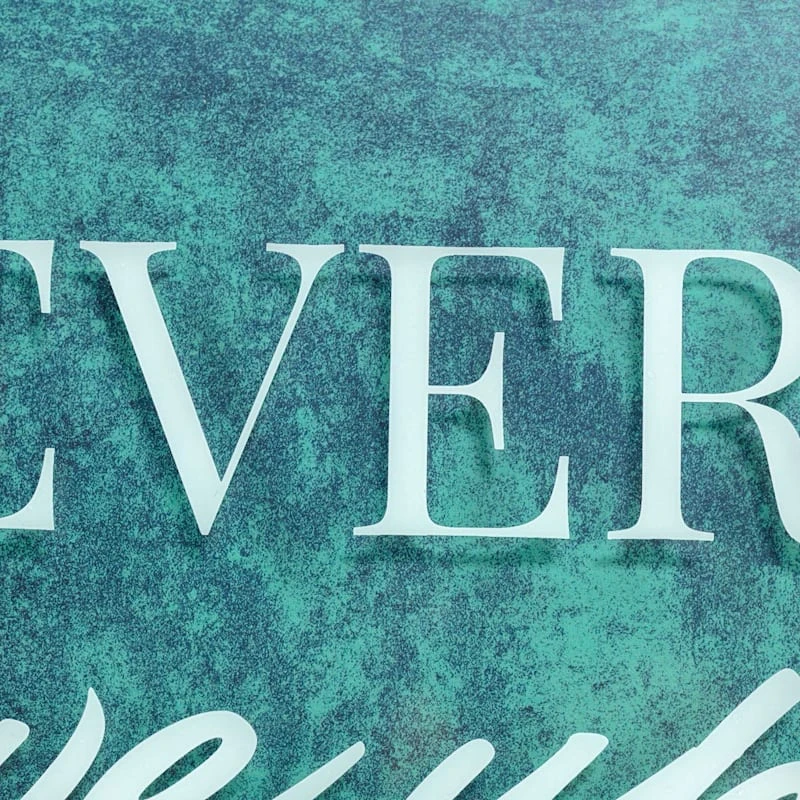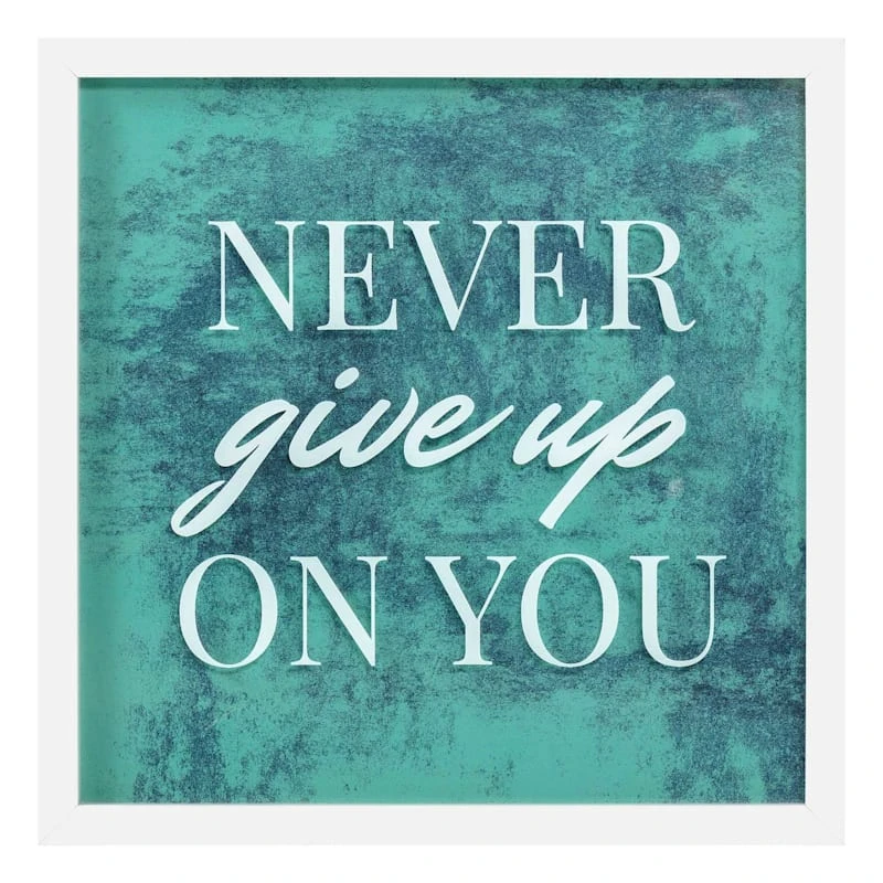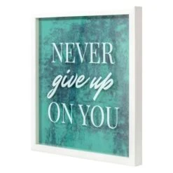 Laila Ali brings the mindset of a world-champion athlete and passion for healthy living to create a modern lifestyle collection with serious style found only At Home. This sentiment print is an easy way to add a pop of charm to any room. Bring new life to your patio, kitchen or den with this interesting 16in. square framed hanging wall art. Featuring a green, teal and white “Never give up On You” design, this contemporary wood and glass picture will bring years of enjoyment and add to your modern aesthetic.