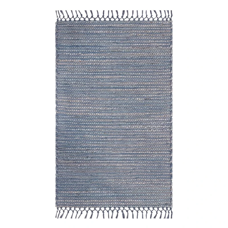 A jack-of-all-trades, including graphic designer, carpenter, contractor, author and beloved reality TV host, Ty Pennington has created a new and exclusive collection for At Home. Our multicolor blue stripe jute accent rug has a truly handcrafted look inspired by ancient weavers to recreate the aged appearance of an original artistic piece. Featuring a refreshing coastal blue woven dotted stripe throughout, this 2x4ft.rug will be one of your most valued treasures.