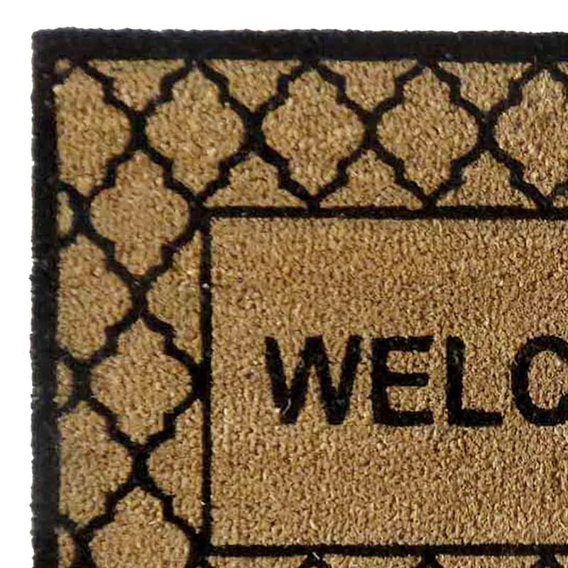 Our natural and black “Welcome” quatrefoil coir doormat lets you express your style as you welcome friends and family. With a wonderful natural and black message motif, this 22x34in. doormat coordinates with all your seasonal decor.